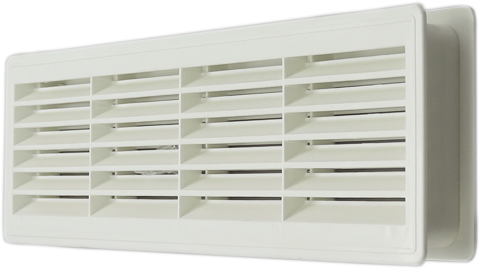 Deurroosters vervaardigd van kunststof. Geschikt voor deuren tussen min. 28mm. en max. 45mm. Voorzien van V-lamellen, zichtdicht.