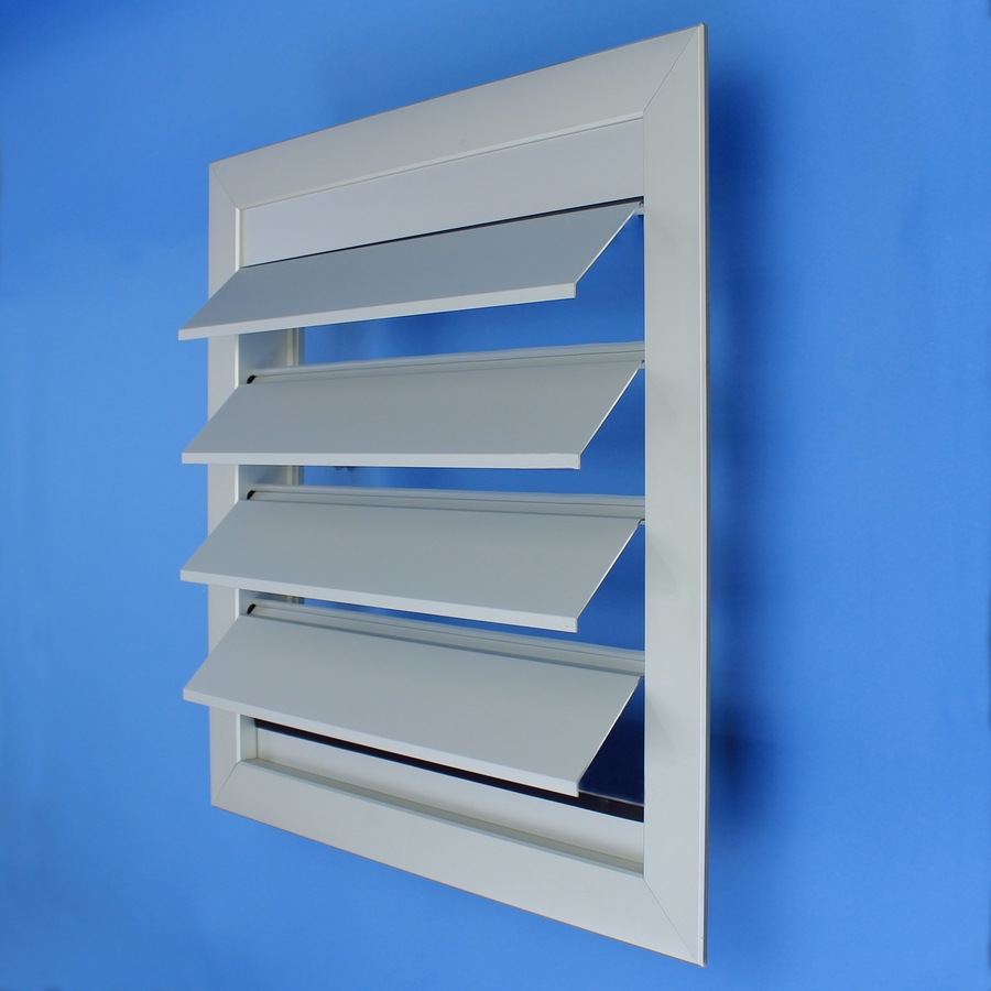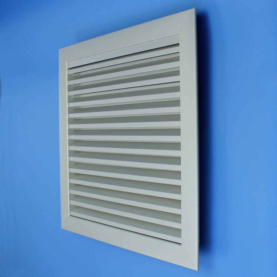 Lamellenrooster vervaardigd van aluminium extrusieprofielen. Geschikt voor kozijn inbouw.