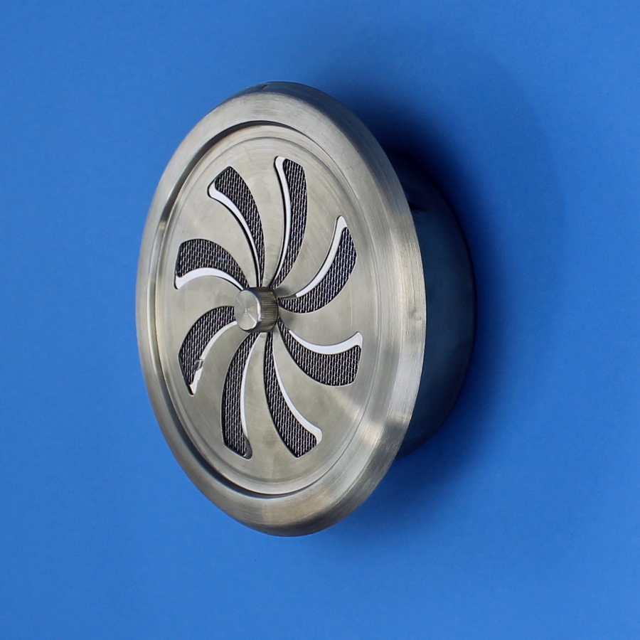Instelbaar toe- en afvoerrooster, uitgevoerd in geborsteld RVS 304. Fraaie vormgeving. Rond model, voorzien van een stalen buisaansluiting met stalen klemveren voor eenvoudige en snelle montage.