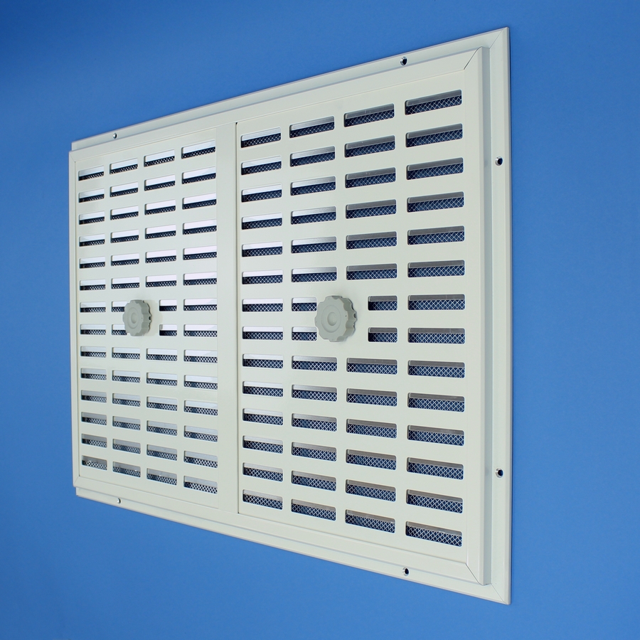 Afsluitbaar rooster vervaardigd van aluminium, opbouw. Voorzien van een schuifje.