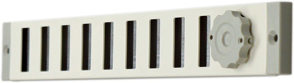 Afsluitbaar rooster vervaardigd van aluminium, opbouw, 40 mm hoog. Rooster is voorzien van een draaiknop, geschikt voor een eventuele koordbediening.
