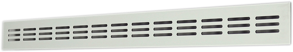 Geschikt voor vele toepassingen, bijvoorbeeld voor plaatsing in werkbladen boven radiatoren, in keukenplinten voor ventilatie van inbouwapparatuur, deuren etc.