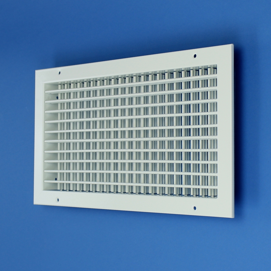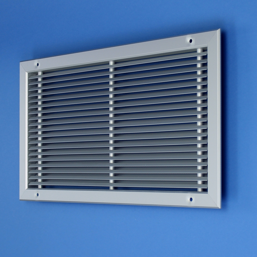 Toevoerrooster of retourrooster vervaardigd van staal. Voorzien van afzonderlijk instelbare horizontale en verticale lamellen.